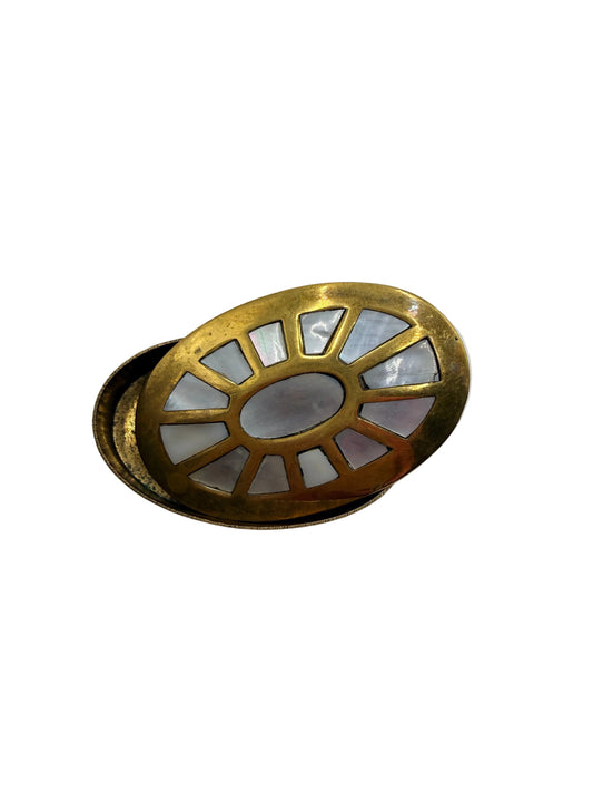 Brass Trinket Pill Box with Mother of Pearl