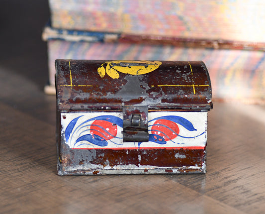 Antique Small Toleware Box, Decorative Tin
