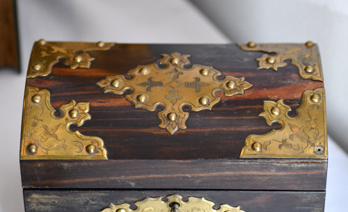 Antique Wood & Brass Ornate Box with Key
