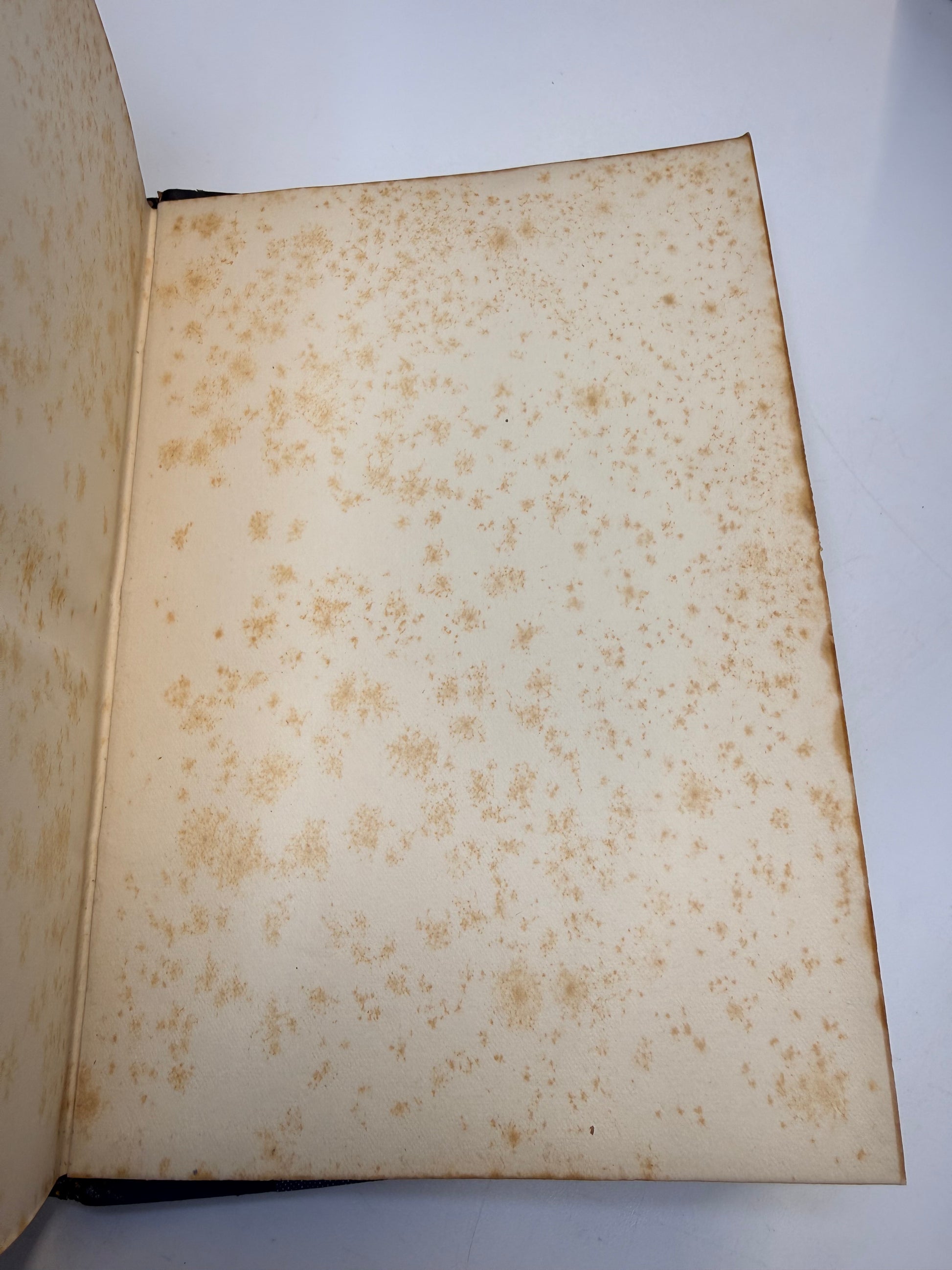 The Poetical Works of Robert Bridges, excluding The Eight Dramas. Oxford University Press, Henry Frowde. Copyright 1912. The Oxford Edition is half-leather in blue with gilt decoration on the spine. There are raised ribs with some bumped areas and missing leather. There is blue cloth and gilt lines on the covers. There is marble decoration on the endpages. The cover corners are rubbed. There is heavy foxing on several of the blank pre-title pages and blank rear pages. Most of the text pages are crisp and white. Size: 7.75", 466 pages.