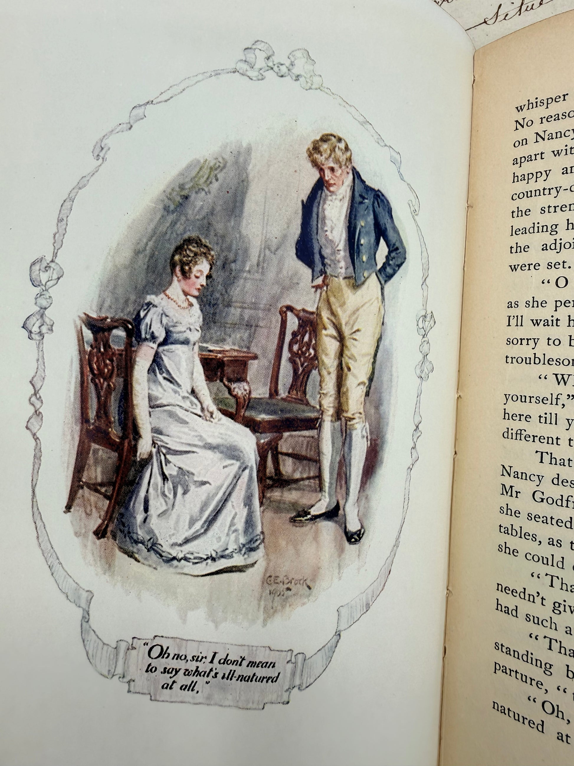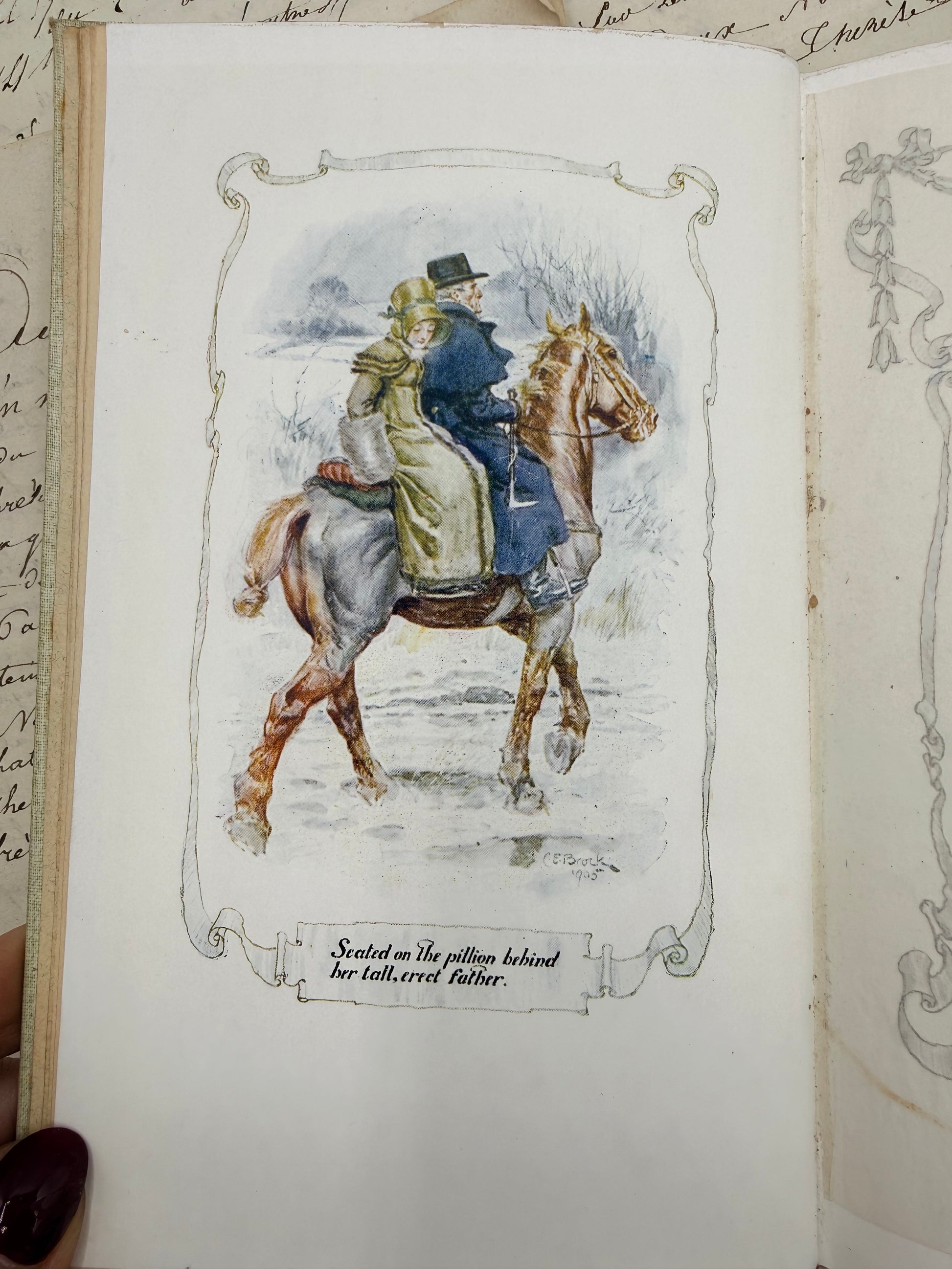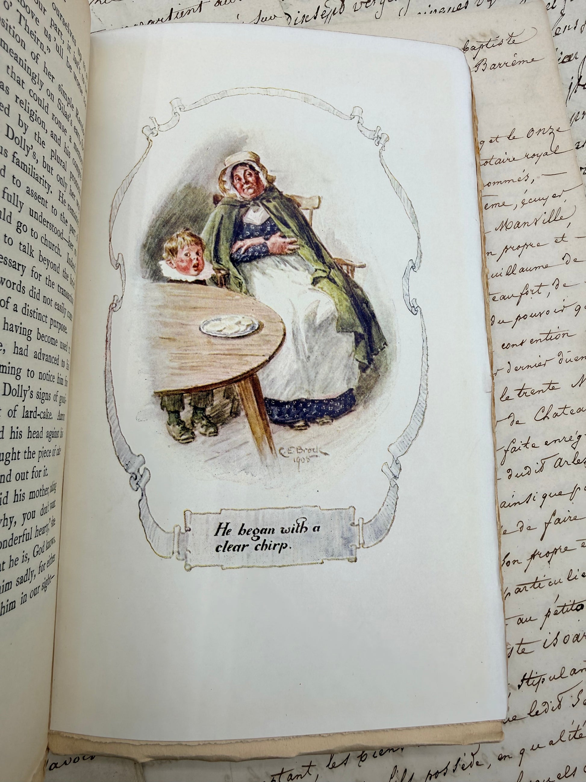 Silas Marner in a Victorian gilded binding. Illustrated by C E Brock. Published in 1905 by J M Dent, London. Please see photos for condition. The pages are moderately to heavily tanned throughout. There is an occasional small foxing spot, particularly around the illustrations. Size: 7.75" 262 pages.