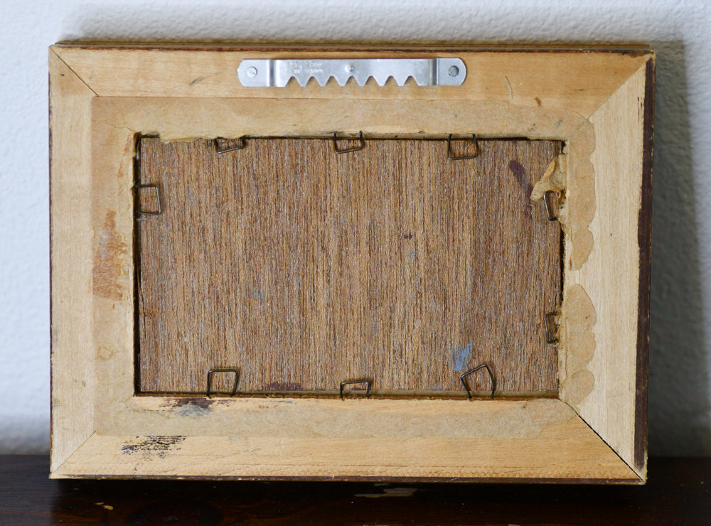 画作已签名。背景为棕色。画框为金色。画框下边缘有一小块缺口,